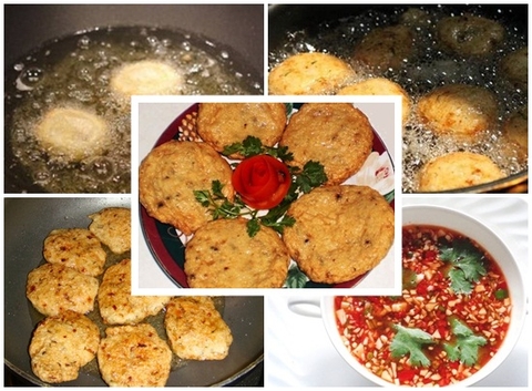 Bước 4: Bạn chiên chả cá trong chảo dầu nóng, chả cá nổi phồng, có màu vàng óng là có thể vớt ra đĩa có giấy thấm dầu được rồi.